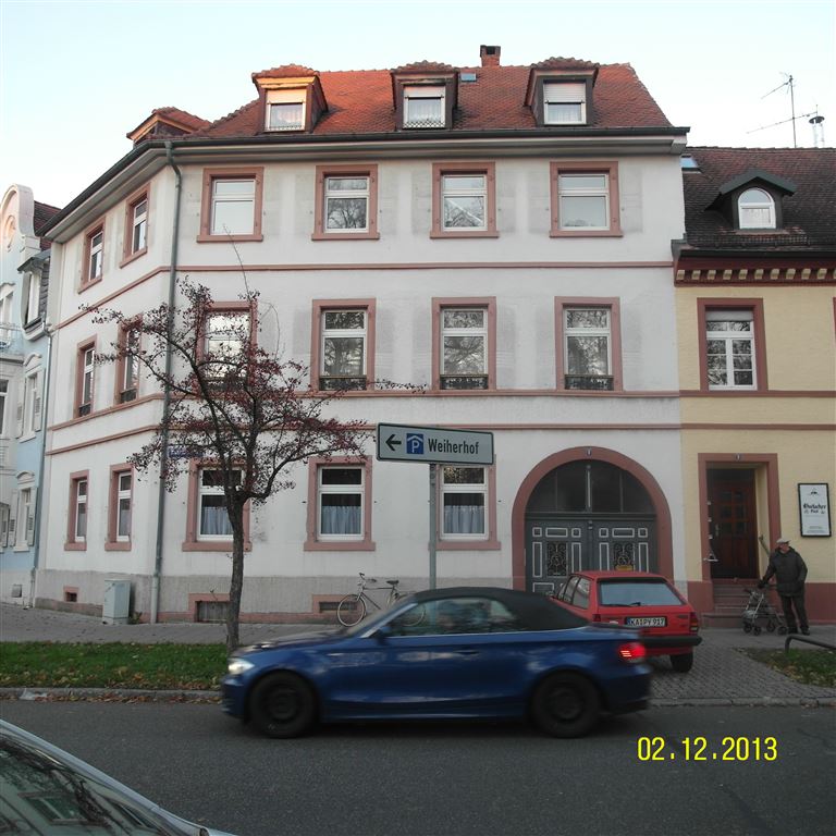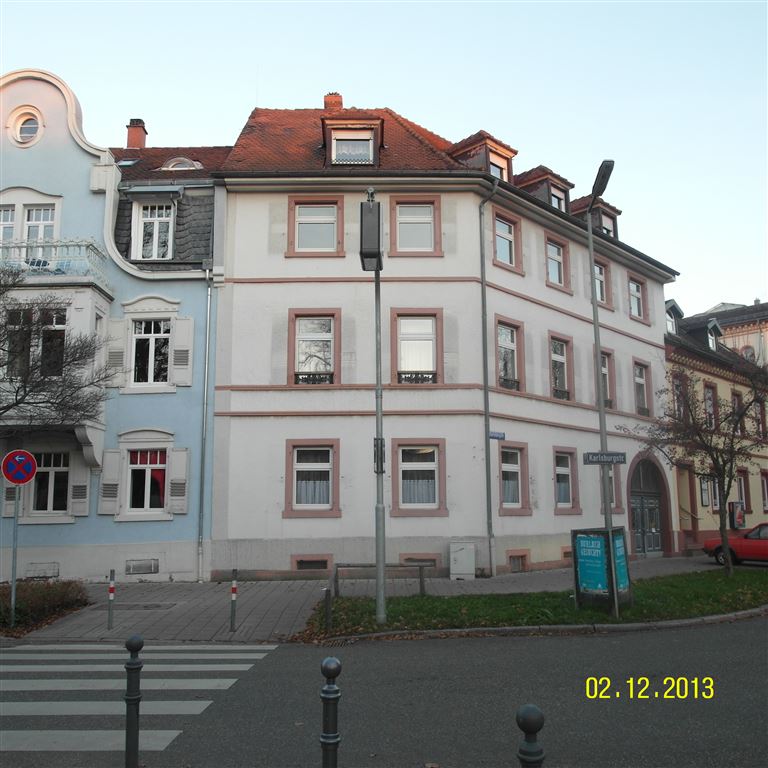 Kulturdenkmal MFH Karlsburgstr. 8, Karlsruhe, Straßenansicht (vor Sanierung)
