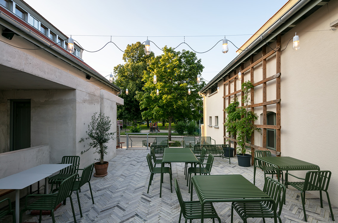 Kulturdenkmal Elbingerstr. 44a, Karlsruhe, Dachaufsicht (nach Flachdachsanierung)