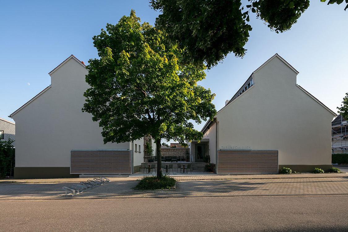 Kulturdenkmal Elbingerstr. 44a, Karlsruhe, Straßenansicht (nach Flachdachsanierung)